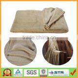 Large Size All Seasons Micro Coral Fleece Plush Blanket Beige Color With Hemmed Edge