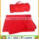 Customized Roll Up Red Color Heavy Polar Fleece Travel Blanket With Carry Handle