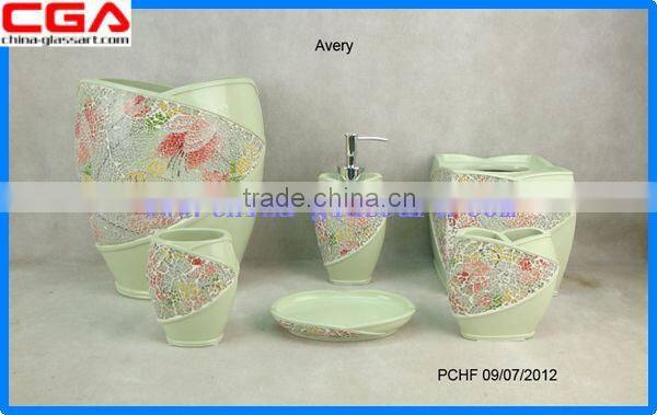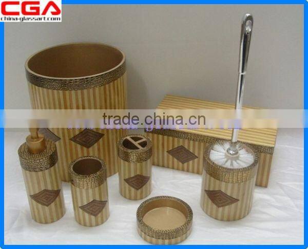 A complete set of contain : Soap dispenser, Toothbrush holder, Tumbler,Soap dish, Toilet brush, Waste bin etc. ( Can be freely match according to customers' requirements)