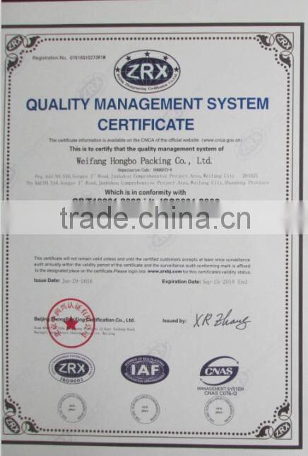 We, Weifang Hongbo Packaging Co.,Ltd, located in Weifang ,Shandong, is a professional produce and exporting company with more than 7 years history .wins good reputation by satisfying her clients and by the premium quality of its products.