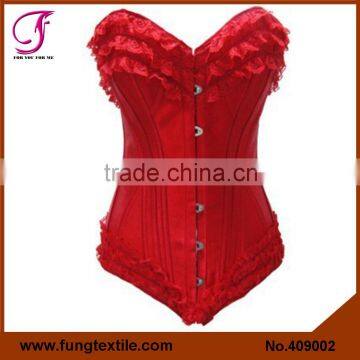 400902 Woman Satin Sexy Overbust Lace Up Red Satin Corset