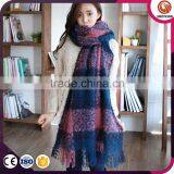Winter Scarf Women's Long Cashmere Wool Scarf Wrap Shawl Plaid Mohair Fringed