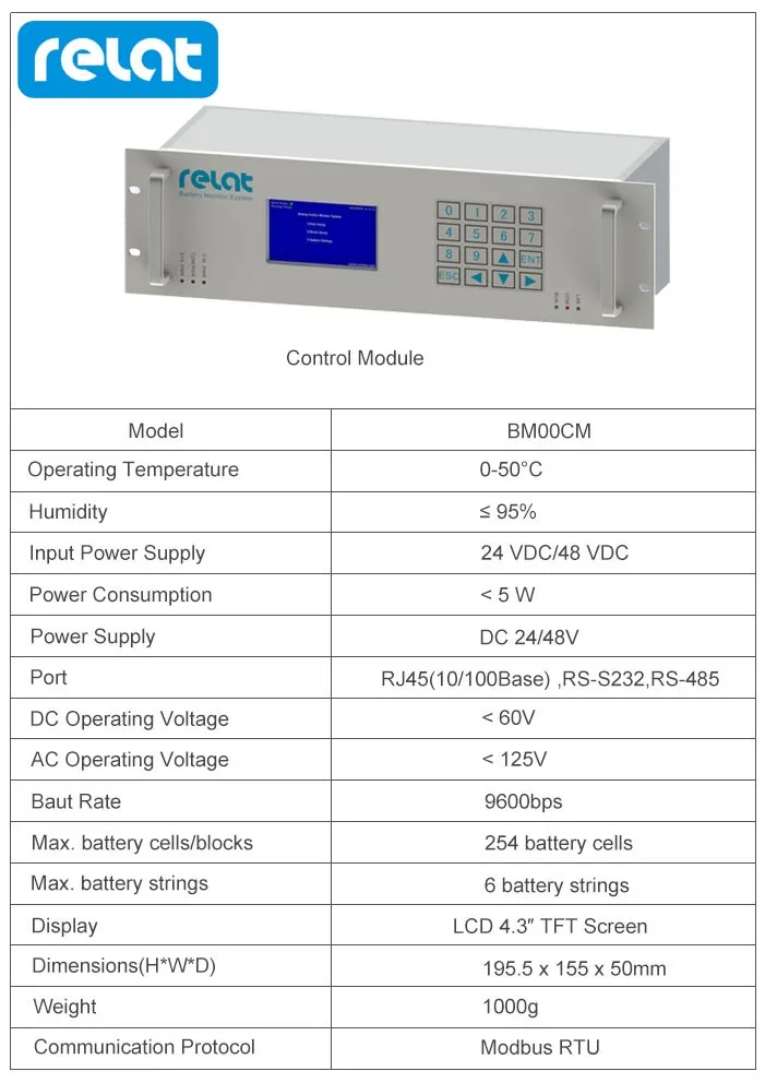 BM00CS is the core component of BMS, it can collection measuring data, judgement and summary alarms, storage and upload the measuring data. Detailed measuring data and alarms can be displayed and researched on the LCD screen.