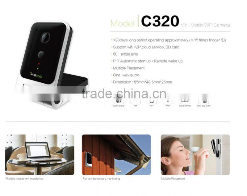 Mini Inddor Multiple Placement Battery Powered WIFI Mobile Wireless Camera With 5m PIR Range, With 32G SD Card and One Way Voice