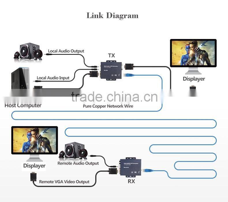 The VGA-Audio Extender is one of our independent development products, the newest promoted VGA Extender has high quality of imagine, it may widely apply in the computer, monitor, security, multimedia teaching systems and so on. it promotes the function of anti-thunder and anti-jamming.