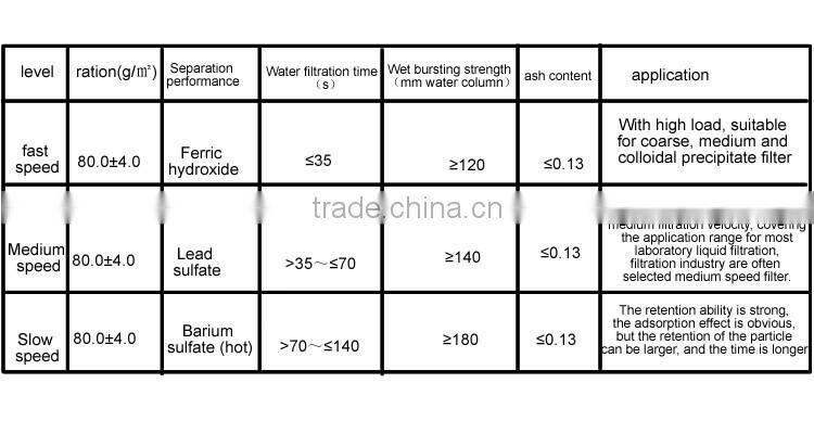 Qualitative analysis of filter paper type and specification and quantitative analysis of filter paper is basically the same, fast, medium and slow, but printed on fast, medium and slow words said. However, in the case of filter paper is not the use of quantitative and qualitative analysis of filter paper filter should pay attention to precipitation: