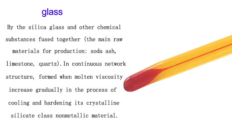 Thermometer is the use of the principle of heat bilges cold shrink to realize the temperature measurement.By the silica glass and other chemical substances fused together (the main raw materials for production: soda ash, limestone, quartz).In continuous network structure, formed when molten viscosity increase gradually in the process of cooling and hardening its crystalline silicate class nonmetallic material.