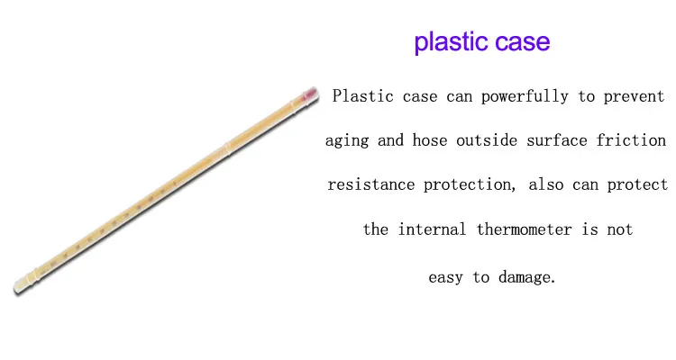 Plastic case can powerfully to prevent aging and hose outside surface friction resistance protection, also can protect the internal thermometer is not easy to damage.