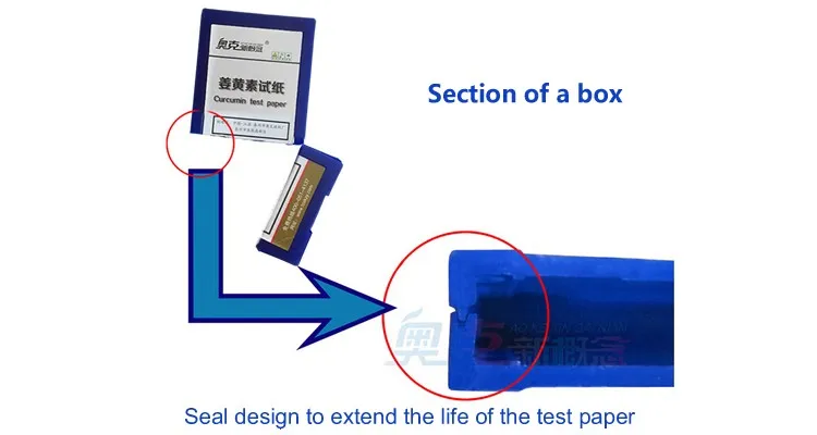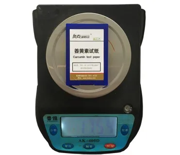 The qualitative analysis is mainly used for the identification of borate. In acidic conditions, test paper from yellow to brown; using sodium hydroxide alkalization, brown spots become blue to dark green. The stability of this paper is poor, easy to fail, it is best to take the new test paper.