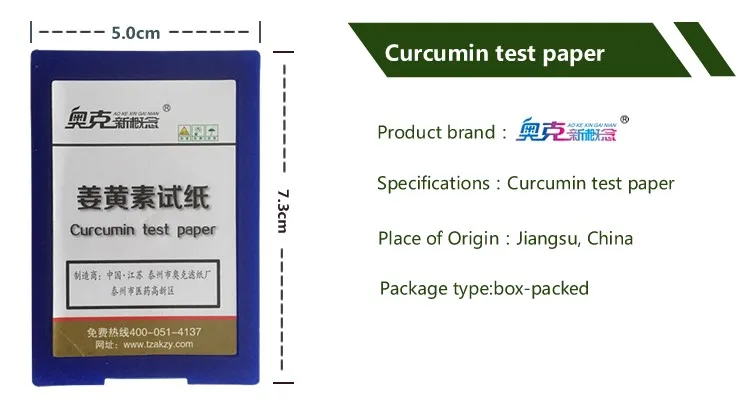 Curcumin test paper refers to Jiang Huangrong in the ethanol is yellow solution. Immerse the filter paper, take out the yellow paper that is made from the air.