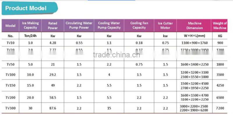 2)Full automatically: the whole ice making process is automatically controlled by PLC system.3)Healthy ice: all the parts which contact with ice making water is made of SUS304 material to ensure totally clean ice