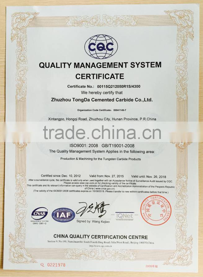 1. We are a Real Factory and Ranked in The Top Five tungsten carbide prducts supplier in Zhuzhou City. (where is The world's five largest supply cemented carbide base).