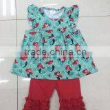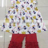 2016 China Yiwu Hot Sale Snowman Olfa Pearl Dress Top Capri Set Early Fall Girls Boutique Clothing Set