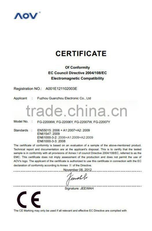 2. ISO 9001:2000 approved, most of the goods were passed CE/GS/RoHs/ERP testing.