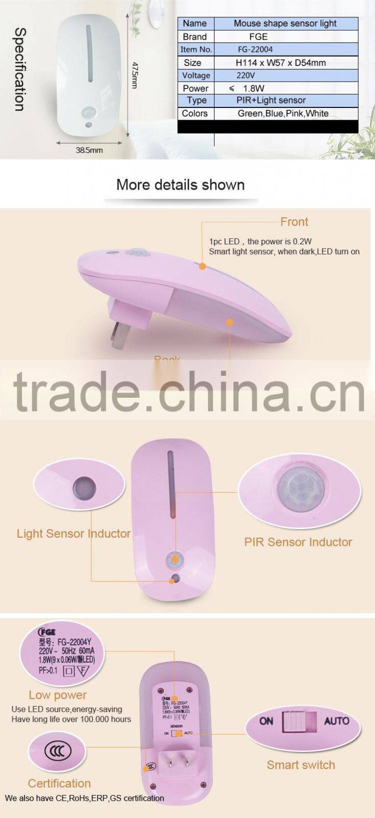 We are mainly focusing on light eletcticity and electrical field for 18 years history, products application for Sensor light , Night light,Motion sensor light, Flashlight, Emergency light etc, all our products are to build the best night light in the international market.