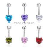 Multi Color Heart Shape Zircon Inlay Non-dangle Belly Button Naval Ring.