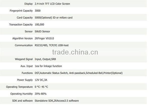 F21 is the first time attendance and access control terminal applying the most advanced SilkID technology. It not only possesses outstandingly high identification rate towards dry, wet and rough finger, but also provides the utmost security by its live finger detecting capability.as well as photo taking function which enables attendance photo and Photo ID(optional).