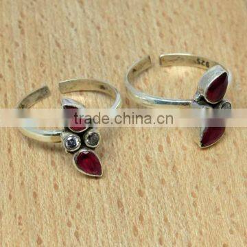 Hot Sales Popular Jewelry Red Onyx_White CZ 925 Sterling Silver Toe Ring, Unique Silver Jewelry, Fashion Silver Jewelry