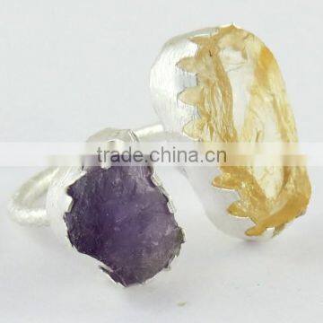 Rough Stone !! Ctrine & Amethyst !! Silver Gold Plated Ring | |