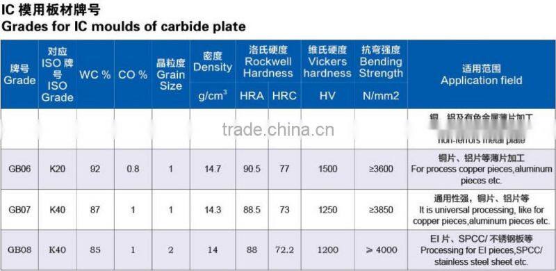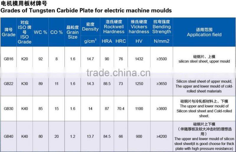 Below are the product type and grade of solid carbide plate for your reference. For more details, please inform us.