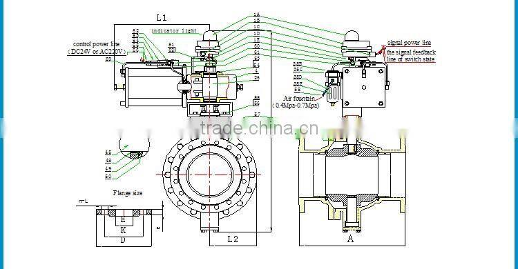 Q641H High Quality Two Piece Pneumatic Flange ball valveNominal Pressure Rating:1.6 Mpa, 2.5 Mpa, 4.0Mpa Working Temperature:-20~300℃ Nominal Diameter:DN10-500mm Rated Flow Coefficient:25~25800Kv Main Material:Valve Body 304,316,316L Valve Plug 304,316,316L Control voltagel:1.24VDC 2.220VAC Seal Type: 1.Self-adjusting Stainless Steel Hard Seal 2.Teflon soft Seal Leakage:1.GB/T4213-2008IV 2.no leakage Actuator Type:Double Acting Air Supply Pressure:0.4-0.6Mpa Accessories:1.Solenoid valve 2.Air Filter 3.Position limit switch box 4.Flange