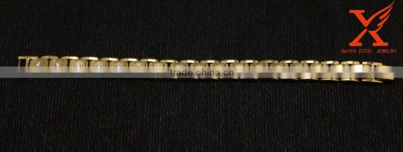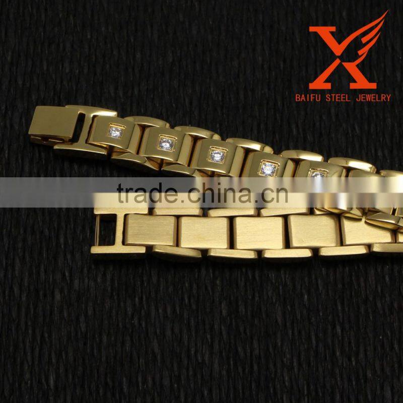 Fashion Bracelet 2016 Wholesale Mens Bracelet Jewelry Gold CNC CZ Stone 316l Stainless Steel Bracele
