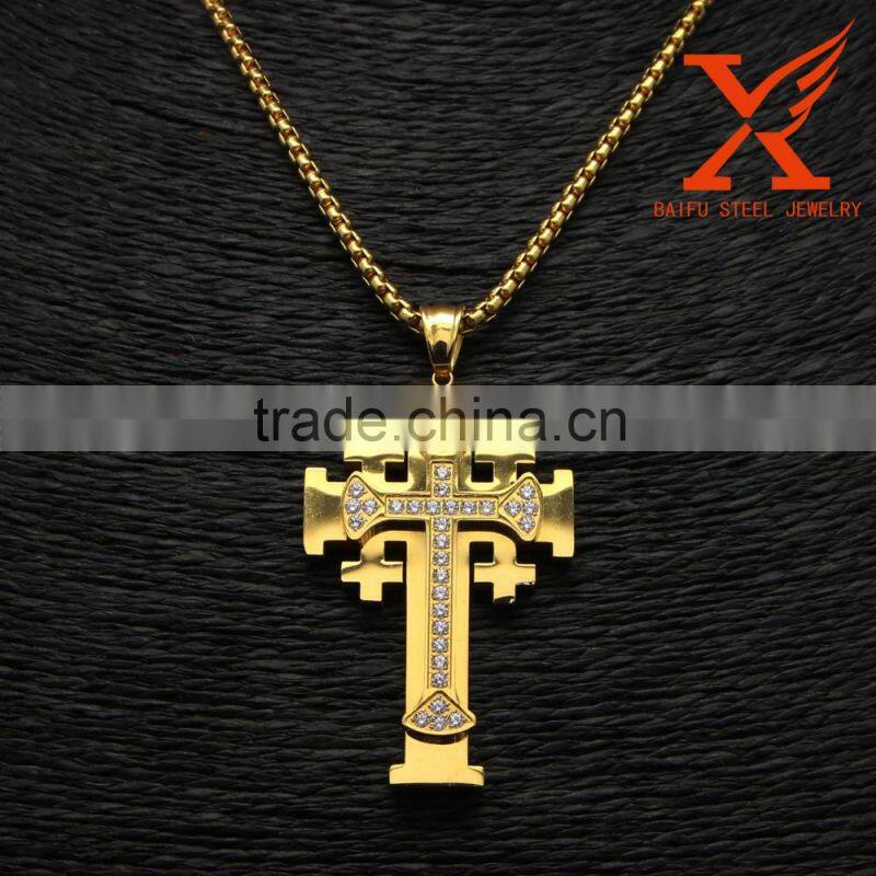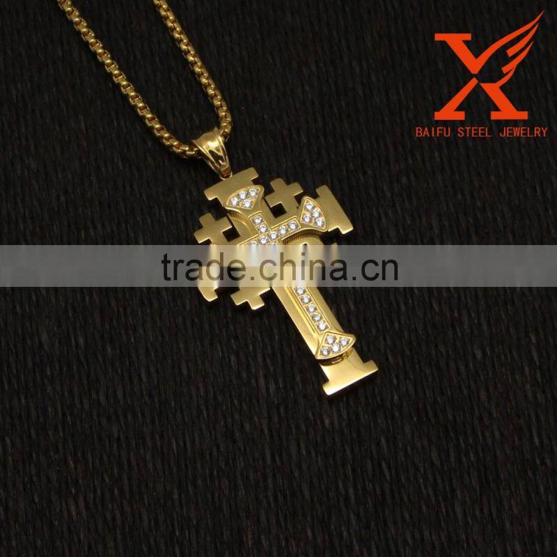 Mens Solid Stainless Steel Gold Double Cross Pendant Iced Out Micro Pave CZ Hip Hop Charm Quality Choice