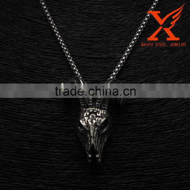 Mens Goat Sheep Head Stainless Steel Pendant Bighorn Ram Skull Horn