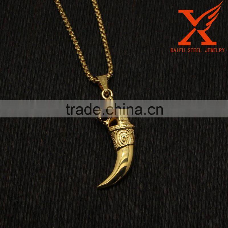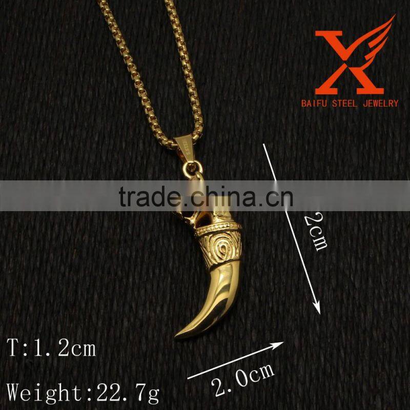 Stainless Steel Simple Gold Pendant Design Tiger Tooth Pendant Necklace