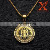 Stainless Steel Medal Of the Virgin Mary Round Rhinestone Heave Designer Gold Pendant