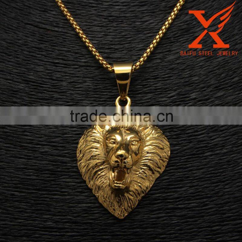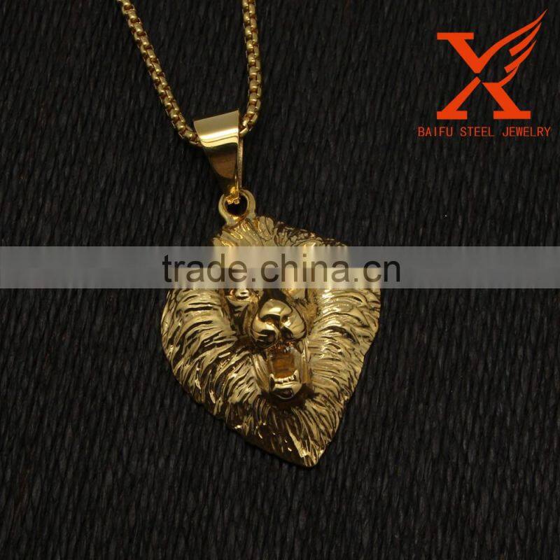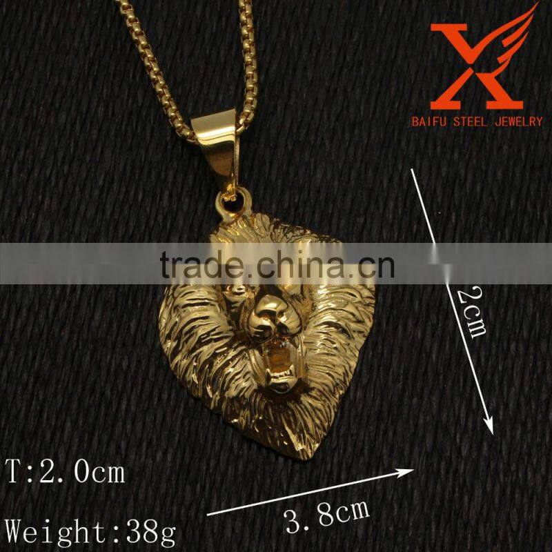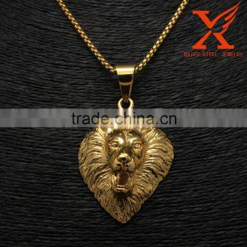316L Stainless Steel Gold Roar Africa Lion King Head Stong Mens America Gold Pendant Different Types Of Pendant Chains Jewelry