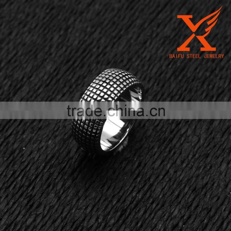 In Stock Wholesale Hollywood Star 2016 Men Trendy Cool Stainless Steel Vintage Tire Rectangle Pattern Band Smart Ring 10mm