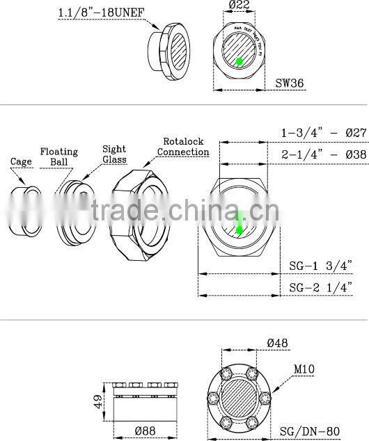 SW36, SG-1 3/4" and SG-2 1/4" sight glasses have a ball inside them in order to make it easier to see oil / liquid level.