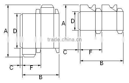 | Type of box | A max | A min | B max | B min | C min | D min | F min |