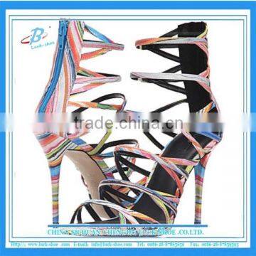 Sexy women high heel pumps sandals pretty rainbow color open toe strappy