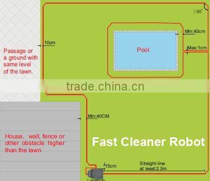 Now:The robot started on the wire or inside the virtual wire, the robot will find the virtual wire and follow it to the charging station, meet it, then back from the charging station and circle to the back of the charging station, and follow the virtual wire cutting until meet the charging station again, then back to the lawn for cutting continuously.