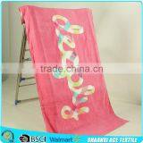 High Quality Pink Color Velour Printing Brand Towel/brand Letter Beach Towel