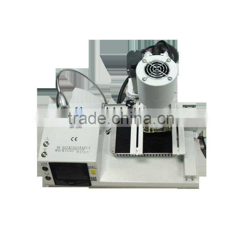 Dinghua bga rework station DH-200 is with 2 independent heaters ,and upper heater is automatic , mainly reworks motherboards of mobile, GPS navigator and wifi mode machine and so on,Dinghua is the best brand of bga rework station made in Shenzhen, China.