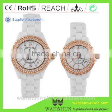 2016 Fashion Replacement Sapphire Withe Ceramic Lovers Watch With Crystal