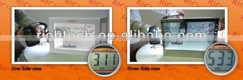 RichTech offers a wide range of design services for their See Through LCD Display. We can customize different designs for your required product presenting showcase. The showcase frame color and dimensions can be changed to meet a client’s individual needs and decoration requirements. If a client desires a customized video content for their exhibit product, all they have to do is request RichTech’s design services to make something up for them.The only limit is your imagination.