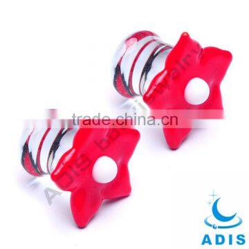 Cute Pretty Girls Red Flower Shape Tranparent Glass Ear Plugs
