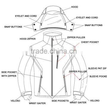 Style BBZJ-016 is a Men's Ski jacket, specially designed to resist extreme weather conditions.Offering warmth and comfort. With all the features of a ski garment, such as totally thermo-sealed seams, thermal hand-pockets, snow-gaiter with anti-slip rubber and cell-phone pocket inside.