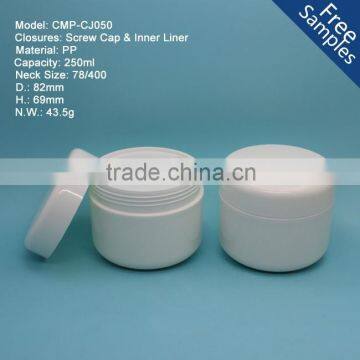 250ml Wholesale white wide mouth plastic PP jar/container |