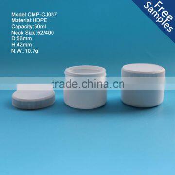 50ml Wholesale small white wide mouth plastic HDPE jar/container |