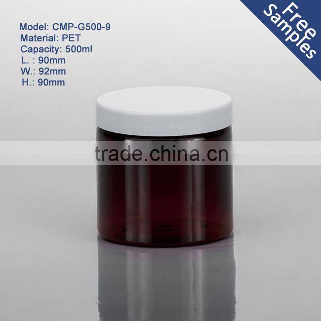 Cylinder Brown Color Plastic Jars for Cosmetics, 500ml Plastic PET Jar