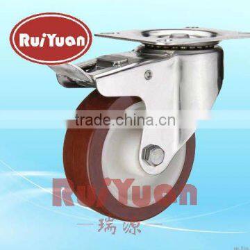 Polyurethane on nylon standard industrial stainless steel double brake caster