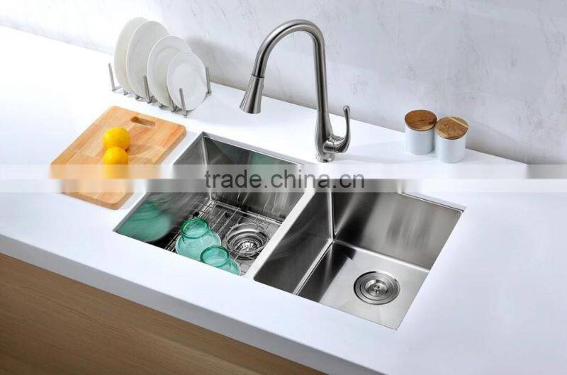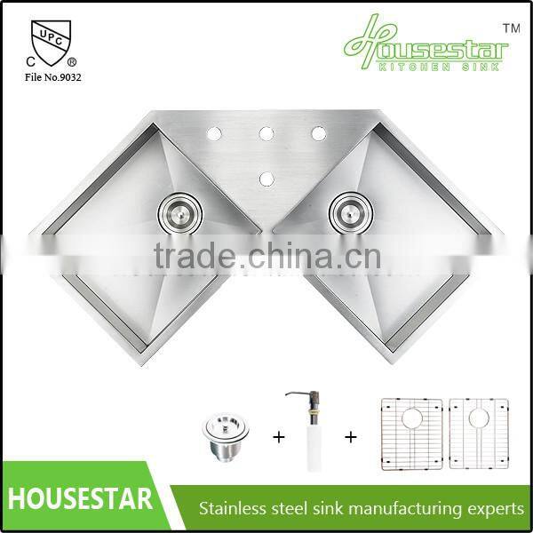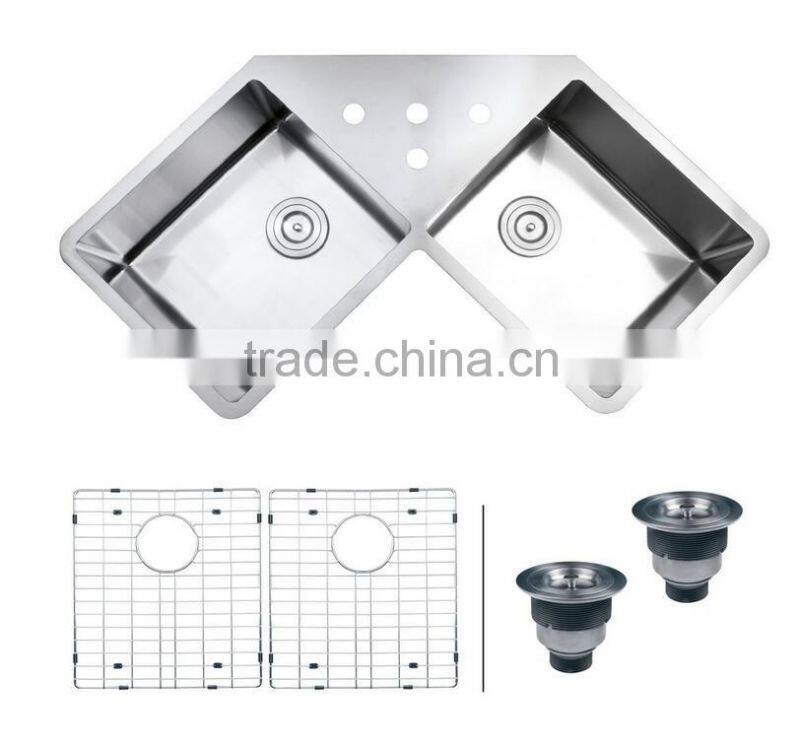 Stainless Steel 304 Double Bowl Kitchen Sink Corner Sink Above Counter