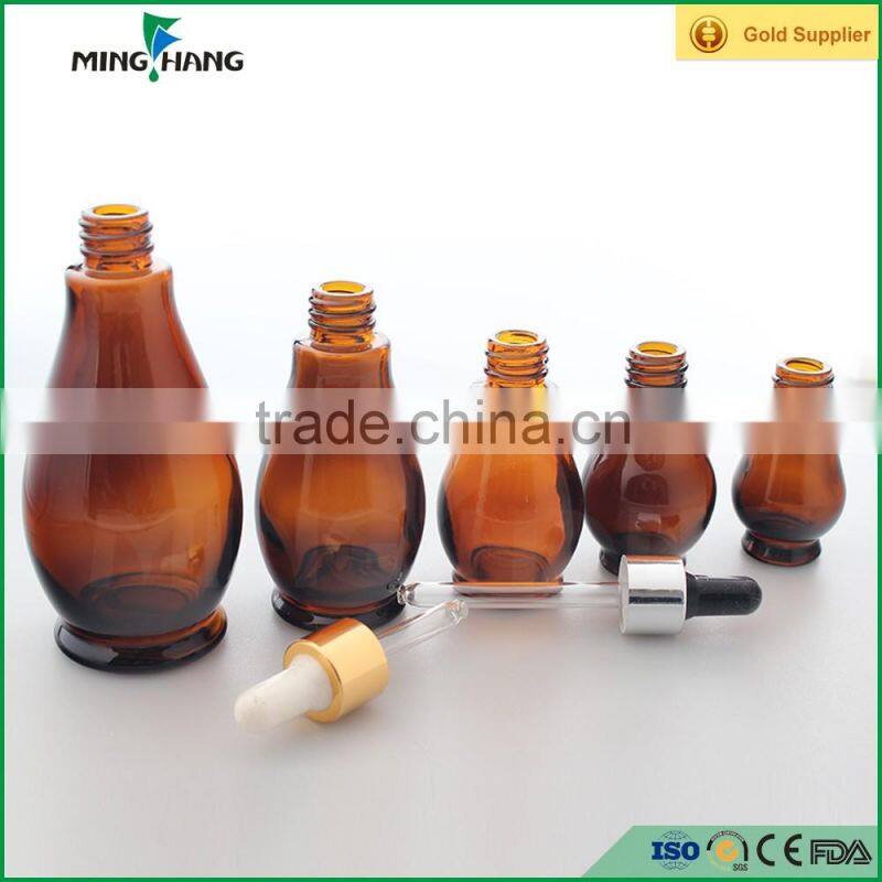 Unique Shape Amber Glass Dropper Bottles for Essential Oil Wholesale