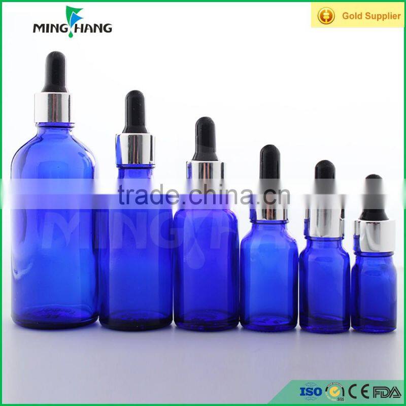Blue Essential Oil Glass Bottle With Silver Dropper