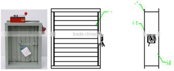 Usage: Fire air outlet combines aluminum monolayer regulated shutter and thin fire damper. It is widely used on the exit of supply air duct or Intake of return air duct in HVAC system, which has fire protection requirements. Normally it is installed in the side of duct, terminal of duct or on the wall, also can be used as air outlet for regulating air flow direction.